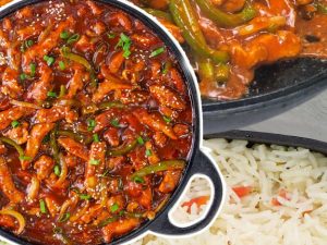 -In a frying pan,add olive oil,marinated chicken & cook on medium flame until chicken is tender (8-10 minutes) then cook on high flame until it dries up & set aside.