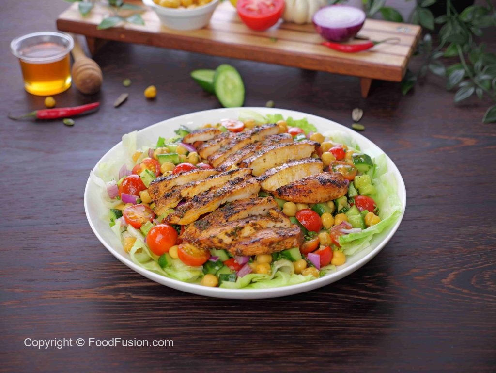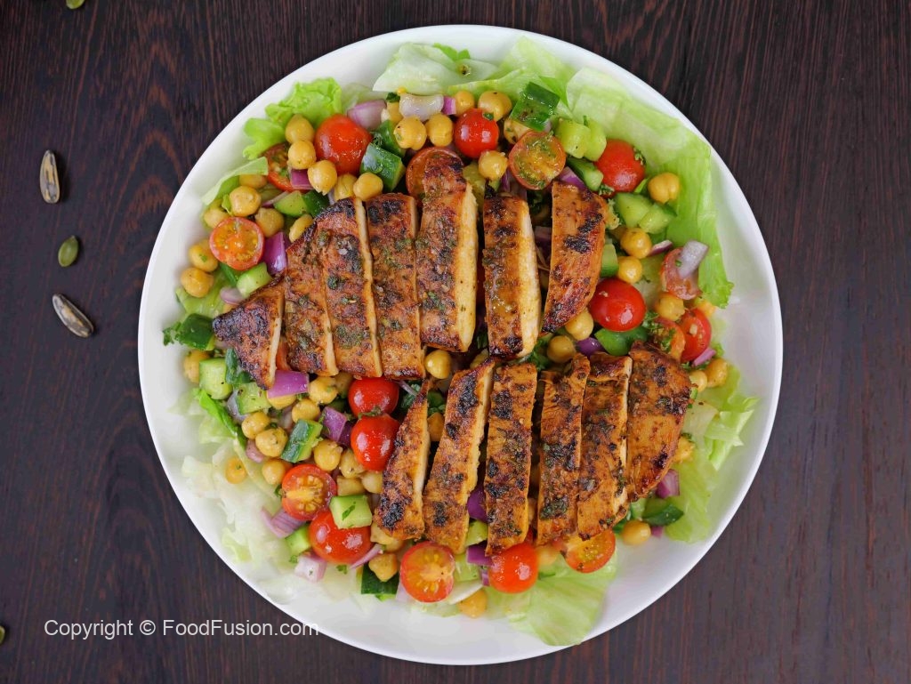 Healthy Protein Salad – Lemon Herb Grilled Chicken & Chickpea Salad
