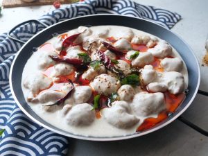 -In a serving dish,add prepared baray & pour prepared yogurt.