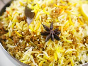 Add mint leaves,boiled rice,remaining prepared spice mix,fried onion,remaining boiled rice and ghee,cover & cook on high flame to build up the steam (4-5 minutes) then turn flame to low and steam cook for 25-30 minutes.