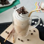 In a serving glass,add ice cubes,prepared tres leches iced coffee,top with whipped cream and garnish with chocolate & serve!