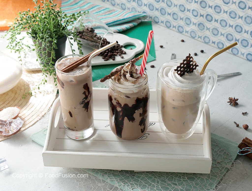 Blender jug mein doodh,laung powder,cayenne powder,darchini powder,cheeni,instant coffee aur chocolate syrup dal ker ache tarhan blend ker lein.