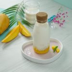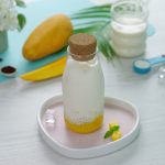 -In a glass bottle,add prepared mango puree (2-3 tbs),boiled tapioca sago (2 tbs),condensed milk, mango chunks,ice cubes,milk,stir well & serve!