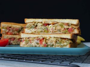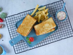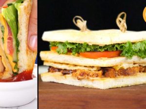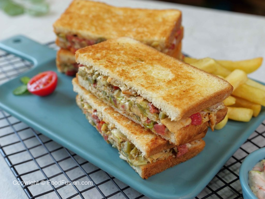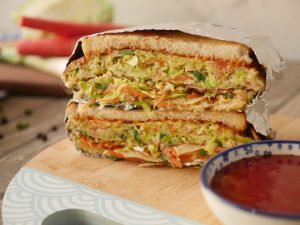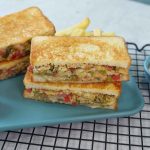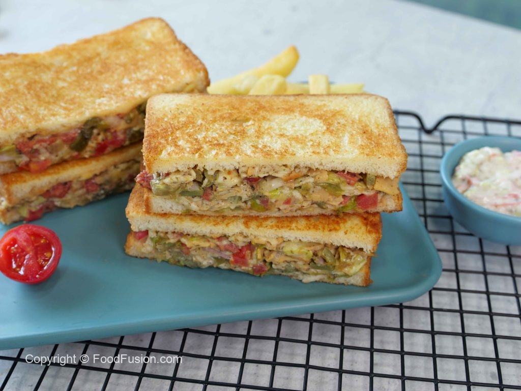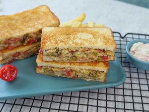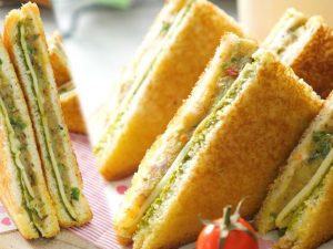 -Apply butter on both sides & toast on low flame from both sides until golden & crispy (makes 2-3 sandwiches).