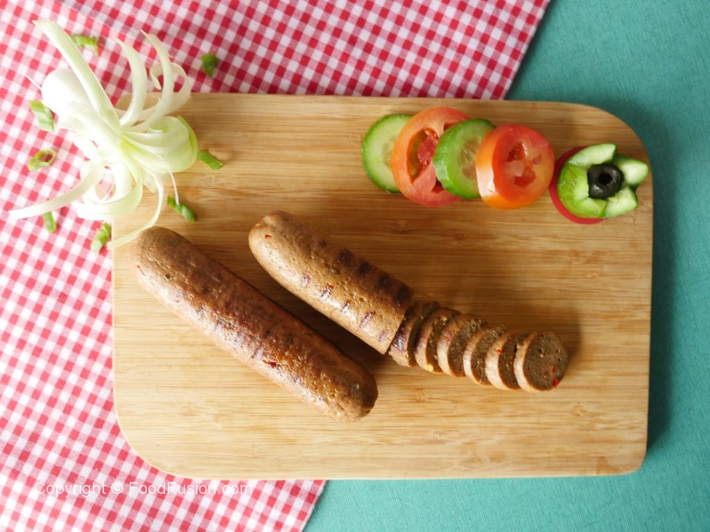 In boiling water,add prepared sausages and boil for 8-10 minutes then immediately add sausages in ice chilled water for 5 minutes then remove cling film.