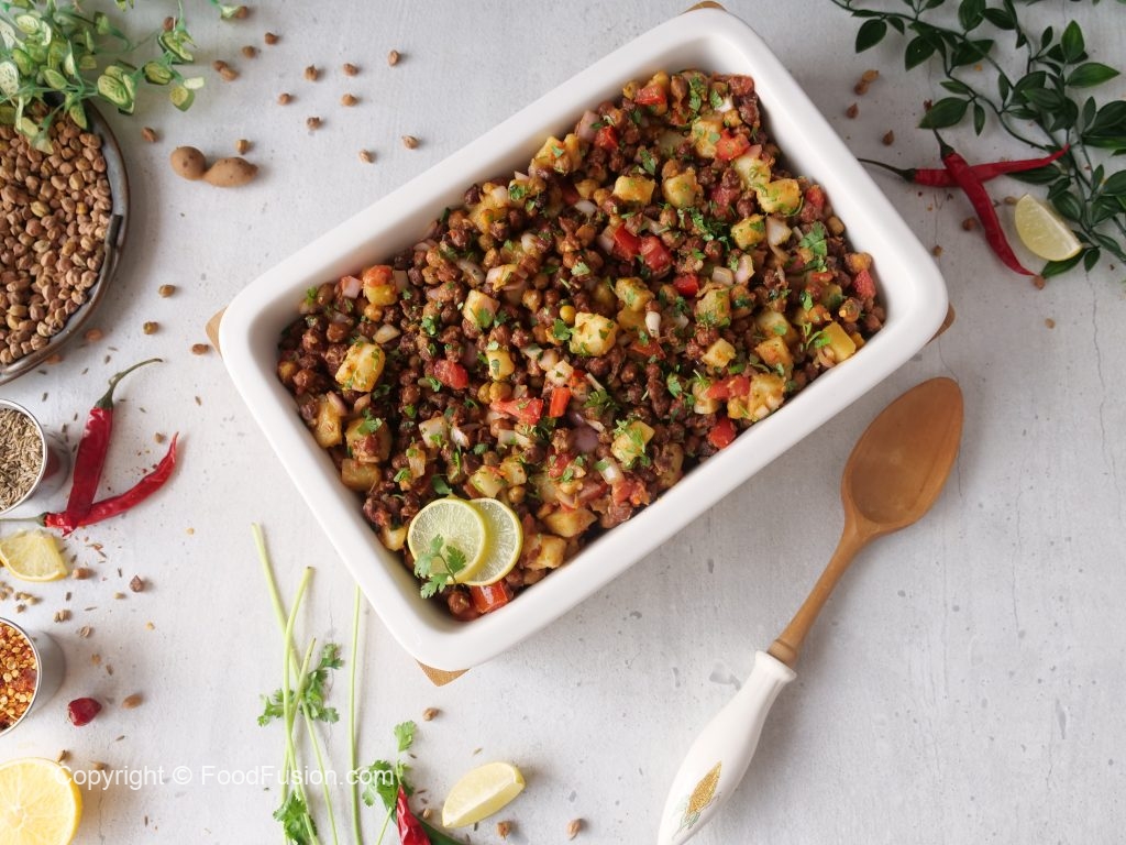 -Boiled aloo,pyaz,tamatar,hara dhania,lemon juice aur hari mirch dal ker ache tarhan mix ker lein.