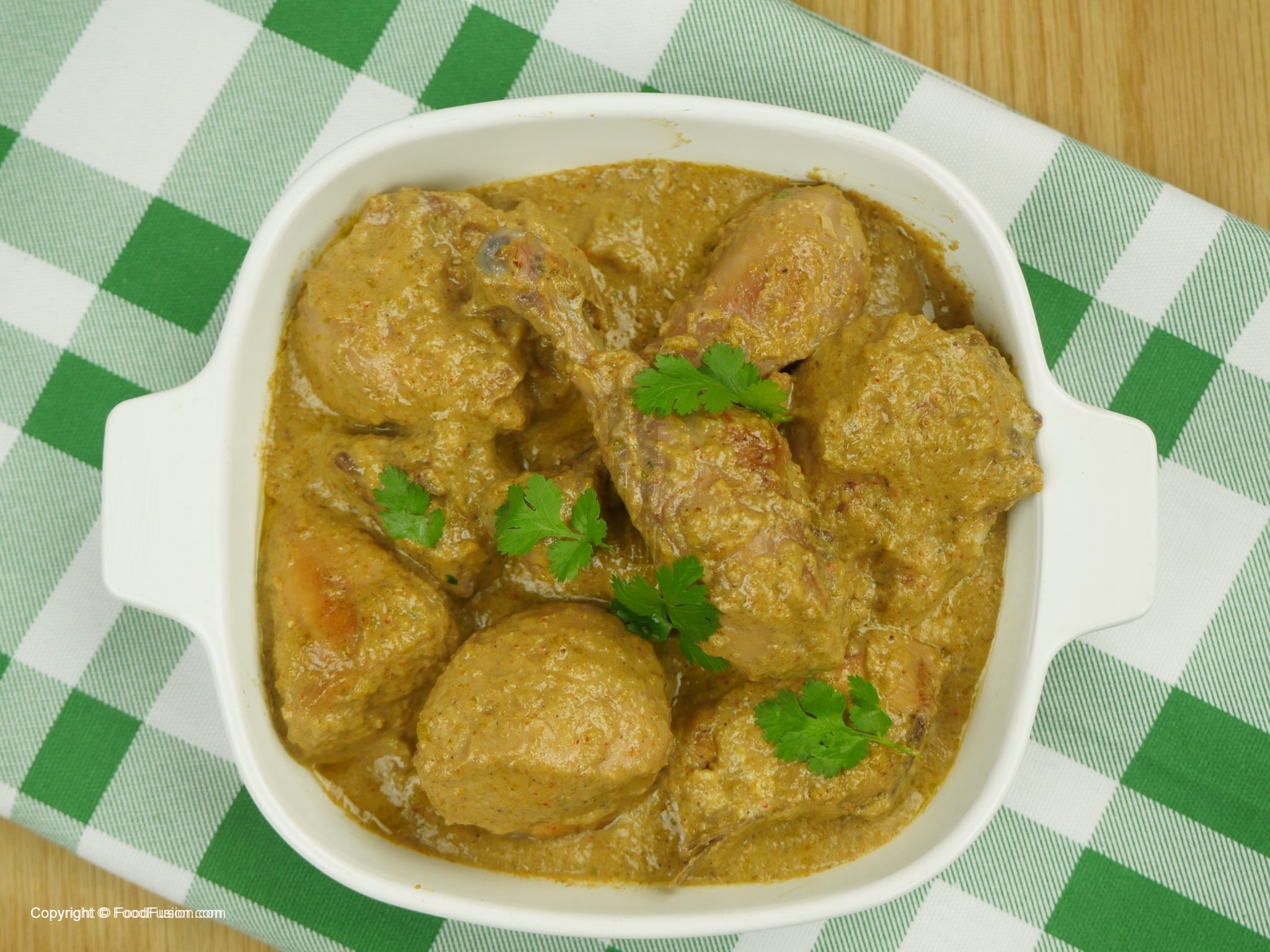 Heat oil in a pot and add marinated chicken, give it a good mix, cover and cook on low flame until done (approx.20 mins) Add ¼ cup water if required.