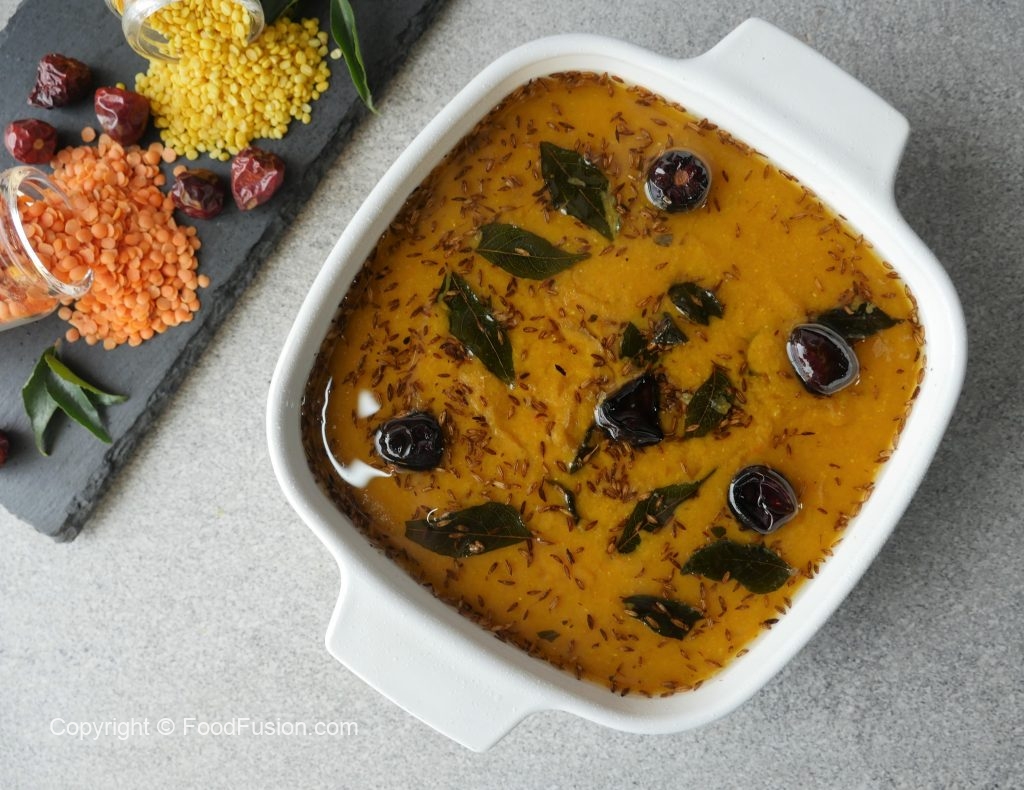 Pot mein pani,lal mirch powder,haldee powder,namak,adrak lehsan paste,hara dhania,hari mirch,mong daal,masoor daal aur tamatar dal ker ache tarhan mix karein aur ubal anay dein.
