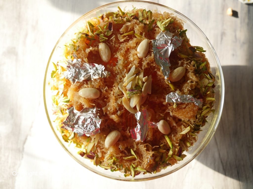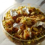 Badam aur chandi ka warq sa garnish ker ka serve karein.