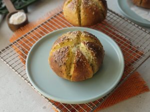Is he tarhan baqi breads tayyar ker lein (makes 7) aur baking tray (lined with butter paper) per rakh dein