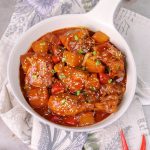 In a bowl,add gochujang paste,soy sauce,hot sauce,oyster sauce,garlic,sugar,red chilli crushed, chicken powder,water,whisk well & set aside.