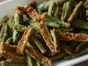 Wash,pat dry and slice okra vertically into 4 pieces.