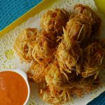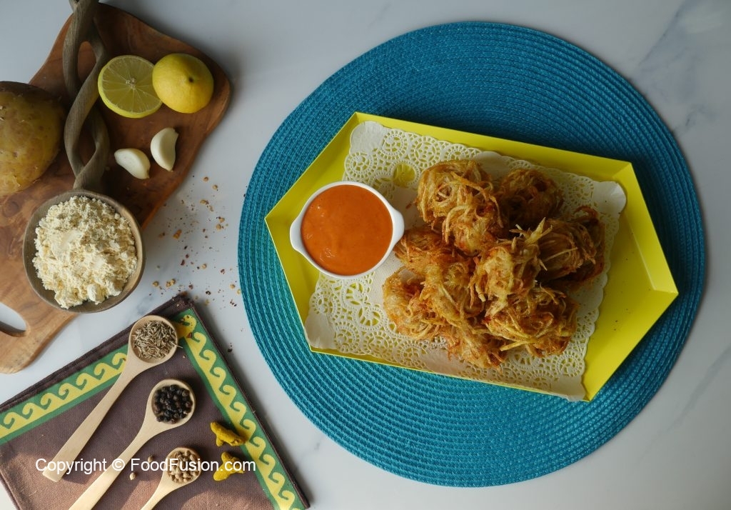 Sprinkle chaat masala & serve with dip.