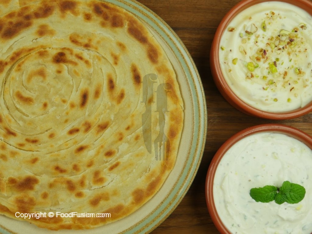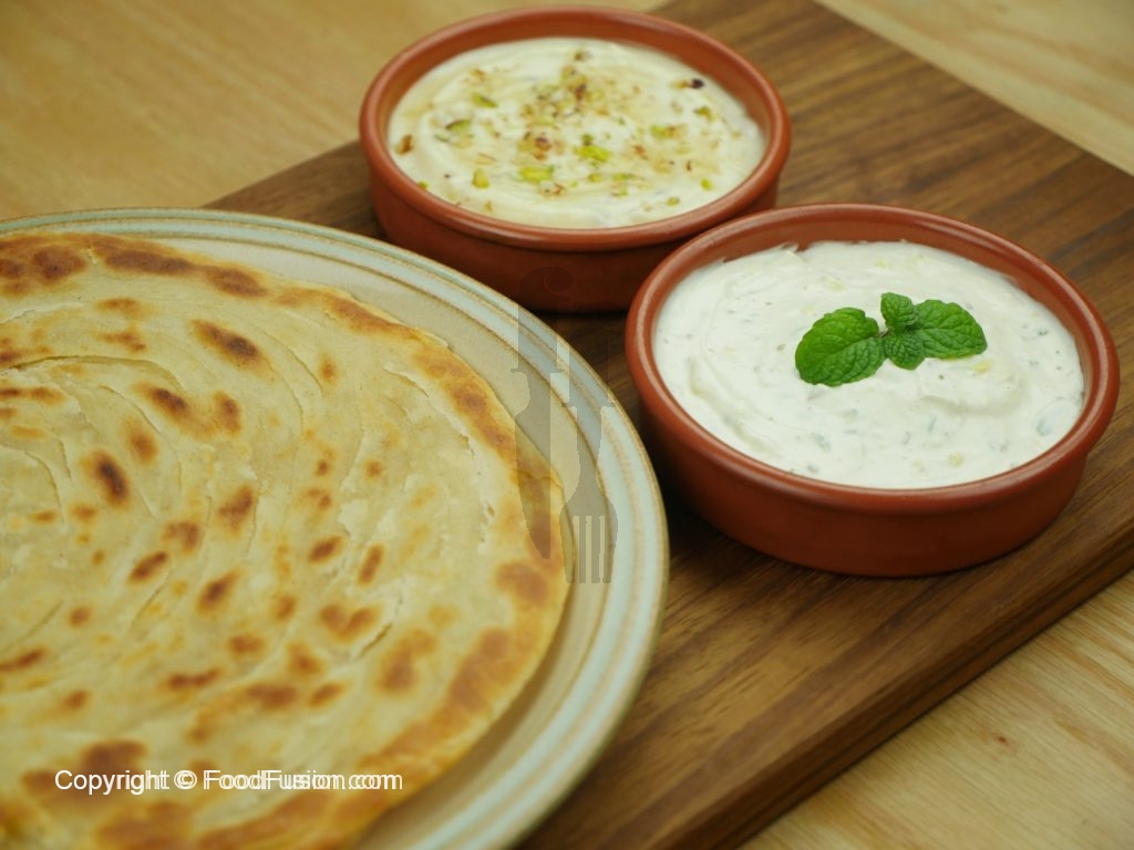 Make your perfect traditional breakfast with this recipe for Lacha paratha and Spicy Cream Dip + Honey Cream Dip to go with it. #HappyCookingToYou
