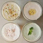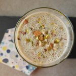 In grinder,add yogurt,ground nuts,dates (deseeded),raisins,salt,milk,ice cubes,honey and blend until well combined.