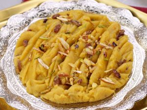 In serving dish,add semolina mixture and let it cool down and refrigerate for 2 hours.