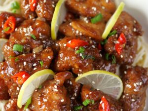 -Garnish with green onion leaves,lemon slices,sesame seeds & serve with noodles,spaghetti or rice!