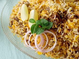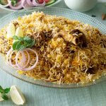 Add reserved mutton,fried onion,remaining spice mix,boiled rice and prepared saffron milk,cover and simmer on low flame for 8-10 minutes & serve!