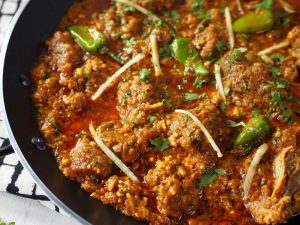 -Karahi mein cooking oil,mutton,pink salt aur makhan daal kar dhak dein,chulha on karein aur darmiyani ancch per makhan melt hone dein phir achi tarah mix kar ke high flame par 4-5 minutes tak paka lein.