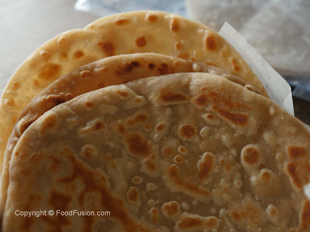 Heat griddle,place rolled dough and cook for 30 seconds (each side) then set aside and let it cool.