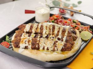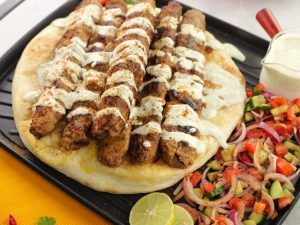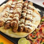 -On toasted naan,place kababs,drizzle prepared sauce & sprinkle chaat masala.