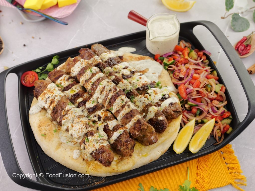 -Toasted naan per kabab rakh dein,tayyar sauce aur chaat masala dal dein.