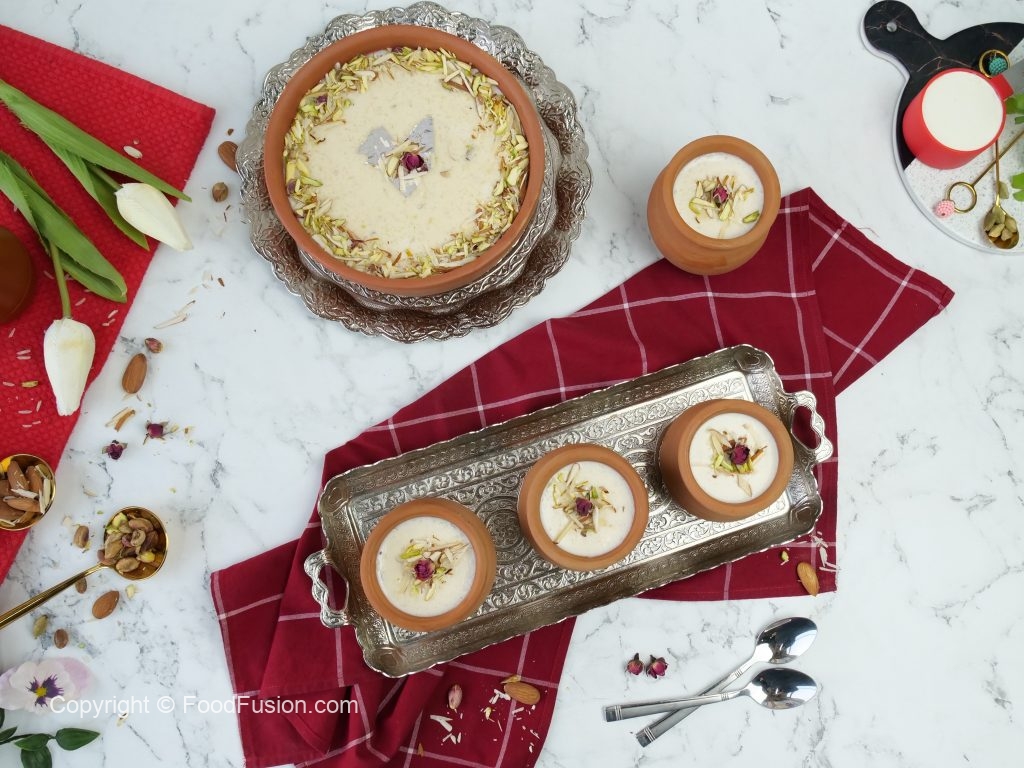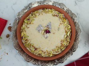 -Garnish with almonds,pistachios & dried roses.