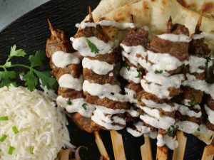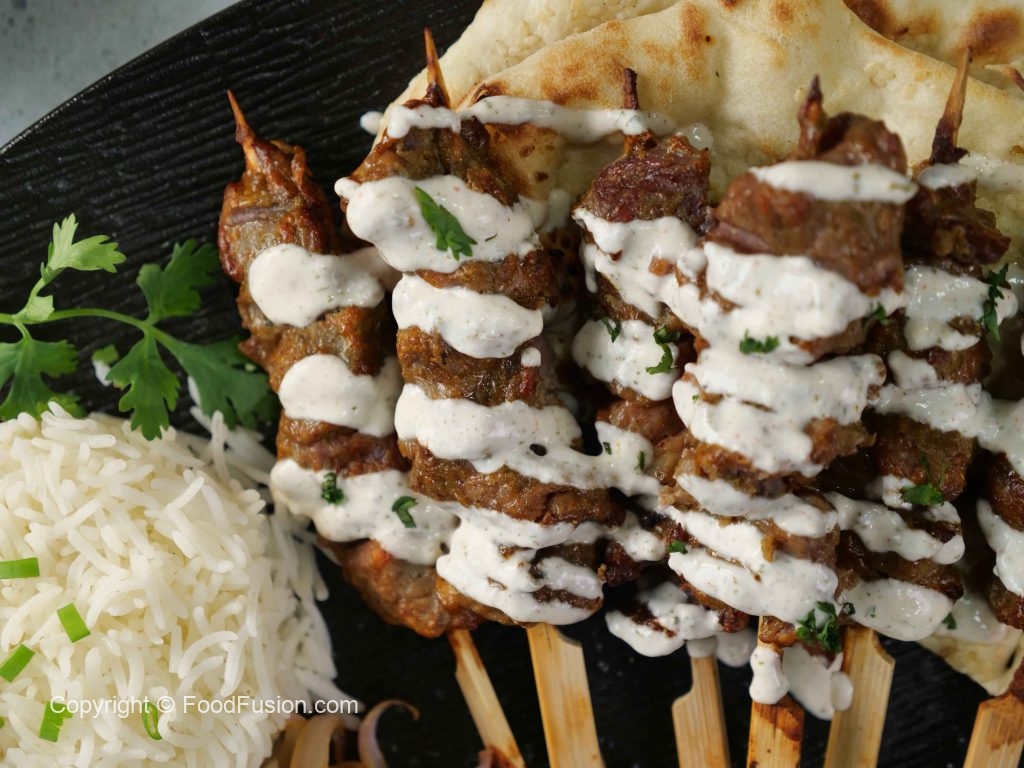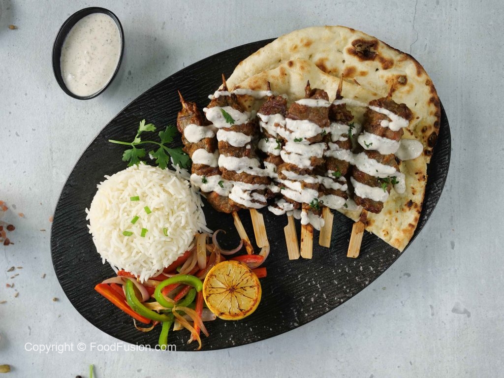 -Oven safe plate par oven grill rakhain,uspe mutton skewers lagayein aur grill ko preheated oven mein rakh dein.