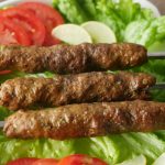 Grease hands with oil,take a mixture and make kababs of equal sizes on metal skewers. (makes 10-12).