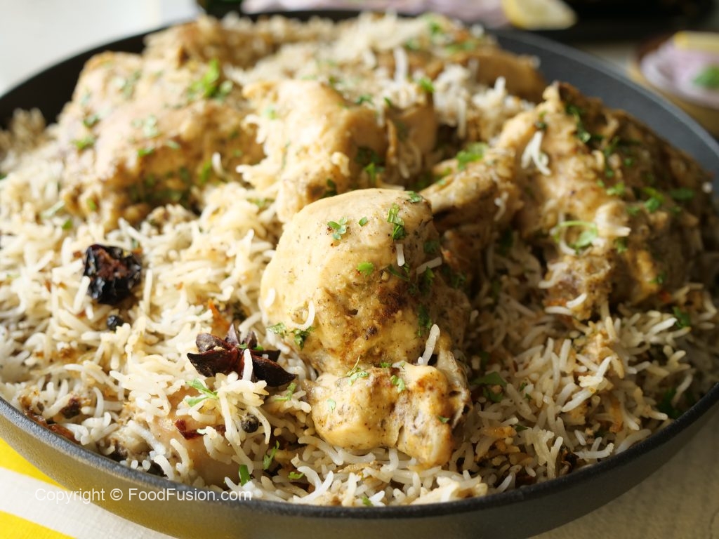 -Remaining gravy mein podina,hara dhania,fried pyaz,boiled chawal ki half quantity,reserved gravy, podina,hara dhania,fried pyaz,remaining chawal,fried pyaz aur steam cooked chicken gravy ka saath dal ker dhak dein aur halki ancch per 15-18 minutes kliya steam cook ker lein.