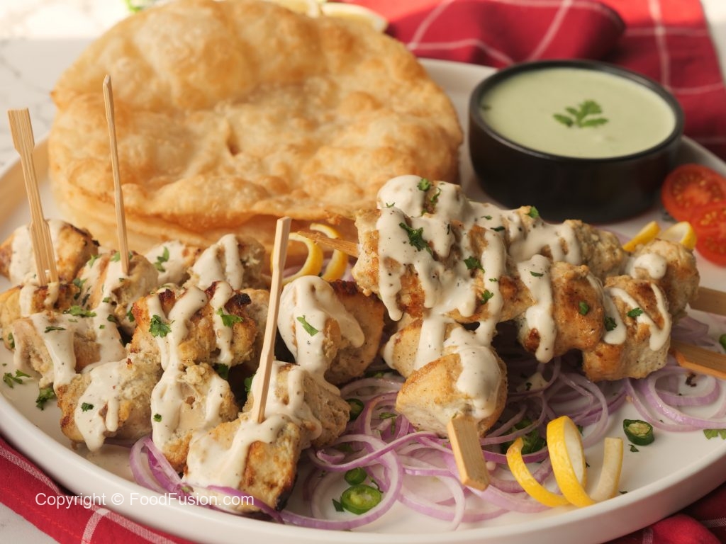 Amazing Malai Tikka Boti Bites with a creamy garlic sauce to upgrade the taste. #HappyCookingToYou #FoodFusion #OlpersCream