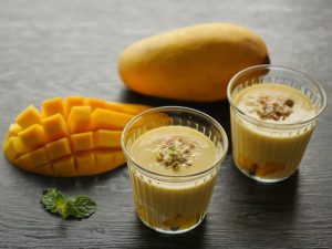 Garnish with mango cubes,dry nuts and refrigerate until chilled.