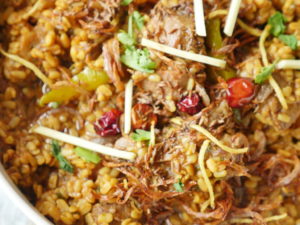 Sabut kali mirch,laung,badi elaichi aur zeera dal ker ache tarhan mix karein aur pyaz golden brown hunay tak fry ker lein.