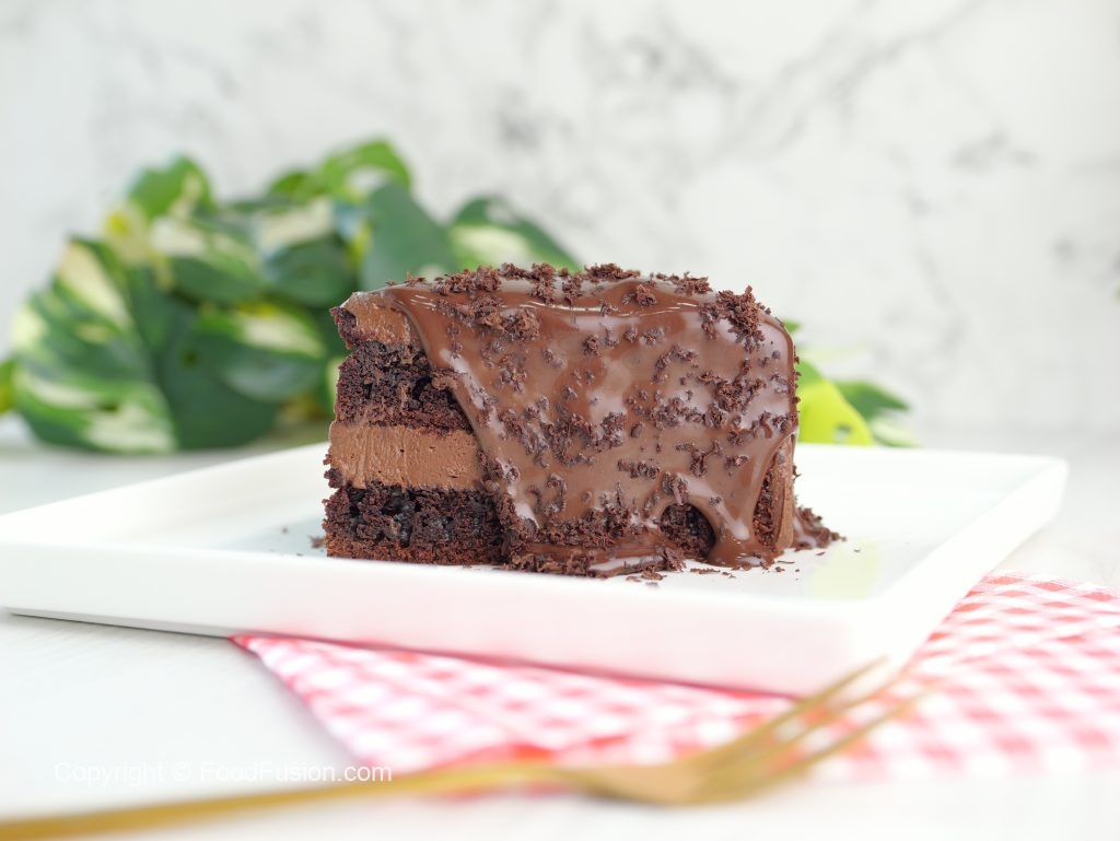 -Ek aur cake layer rakh dein aur tayyar chocolate frosting laga lein aur cake ki sides ko frosting sa cover ker lein aur 2 hours kliya refrigerate ker lein.