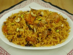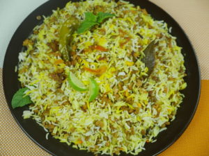 -Add orange food color,fried onion,cover with kitchen cloth & lid and steam cook on low flame for 10-12 minutes.