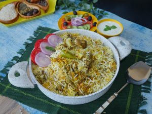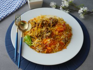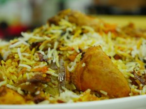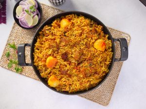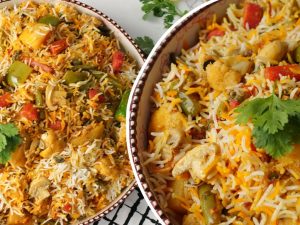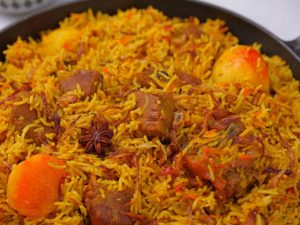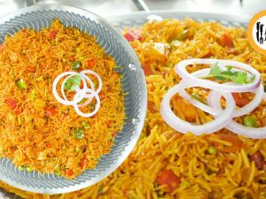 -Orange food color aur fried pyaz dal kar kitchen cloth aur lid se dhak dein aur low flame par 10-12 minute kliya steam cook ker lein.