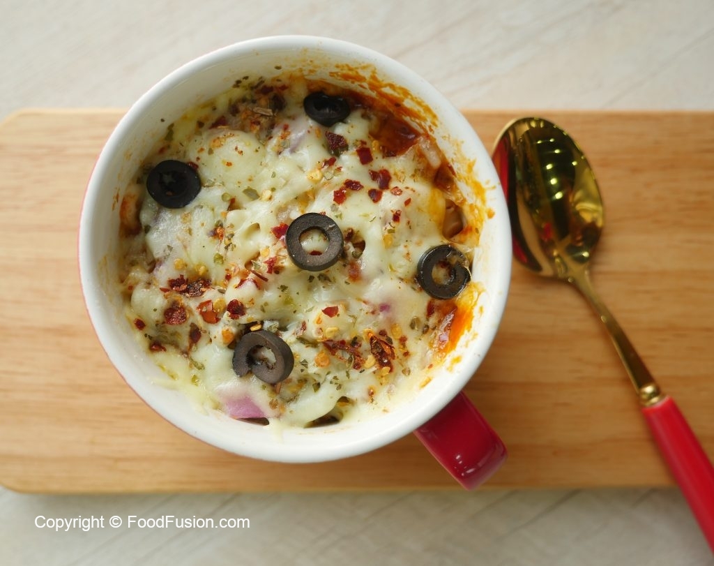 Make Microwave Mug pizza 3 ways. Both kids and adults will love it and the best part is that you can make it in 5 min. #HappyCookingToYou #FoodFusion