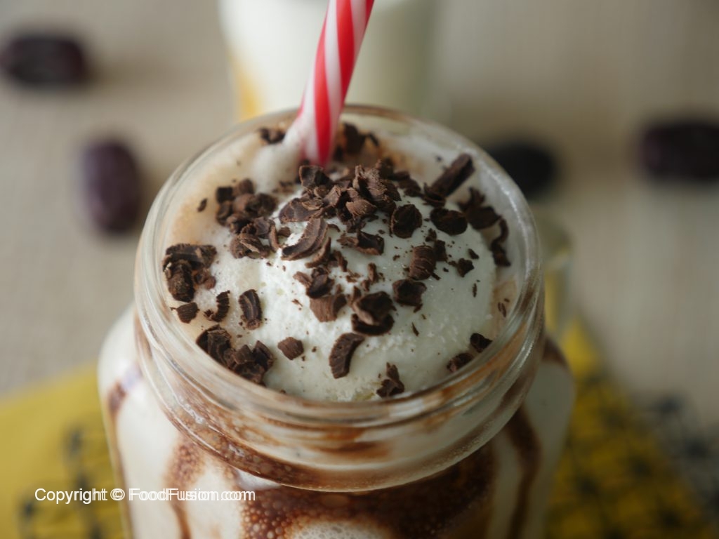 In serving jar,add chocolate syrup,prepared smoothie,ice cream and garnish with chocolate & serve chilled!
