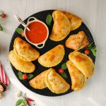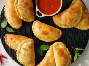 -Place the calzones on a baking tray lined with butter paper.