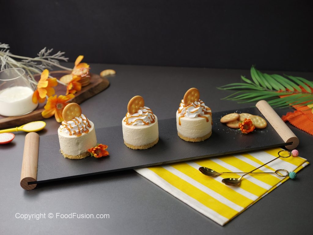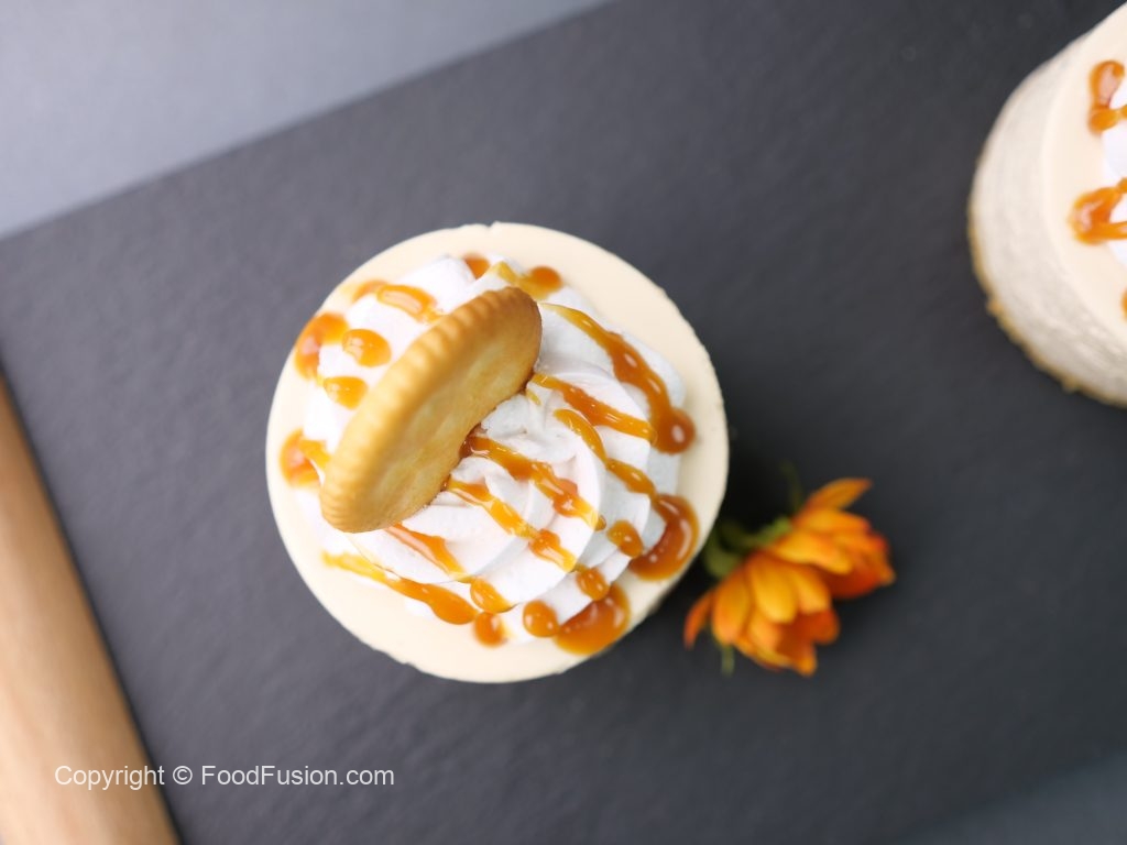 -Pipe out salted caramel cheese filling in molds,spread evenly & freeze for 4-5 hours in freezer.