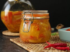 -Jab achar tayyar ho jaye tou 2 weeks kliya kitchen counter per aur 3 months kliya refrigerator mein store ker saktay han.