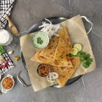 -On a rolled dough,add & spread prepared radish filling,fold one side of the rolled dough,apply water then fold the remaining two sides & make a triangle paratha.