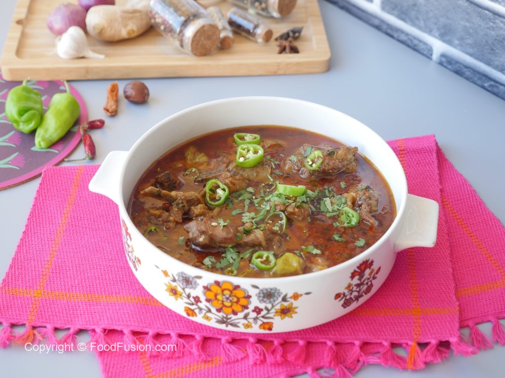 Pani dal ker ubal anay dein aur dhak ker halki ancch per gosht gul janay tak paka lein (35-45 minutes) phir tez ancch per oil alag hunay tak paka lein.