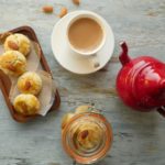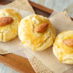 On baking plate/tray,place butter paper and nan khatai balls,egg yolk wash and place roasted almond on top.