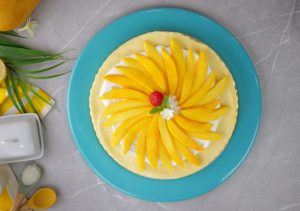 -Add & spread prepared mango cream on biscuit crust & refrigerate until set (4 hours).