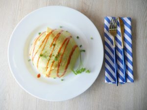 Bowl mein cooked omelet aur cooked chawal dal ker tamam sides ko fold ker lein.