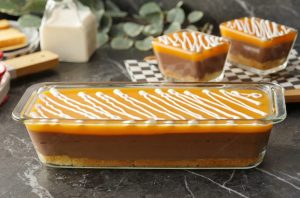 Mixture ko assembling dish mein spoon ki back side sa dal dein ta ka even layer bun jaye & thanda ker lein.