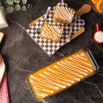 Cake rusks ko orange juice may achi tarah dubo kar assembling dish may set karen aur upper sa orange juice dal dein phir 1 ghanta k liye refrigerate karden.