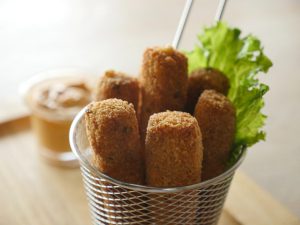 In grill pan,add cooking oil and fry skewers from all sides until golden brown.