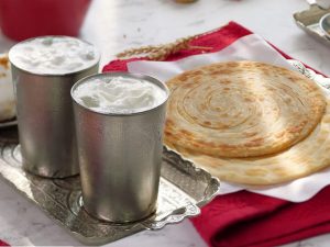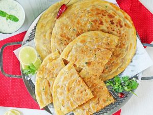 Serve paper paratha with yogurt & chutney.